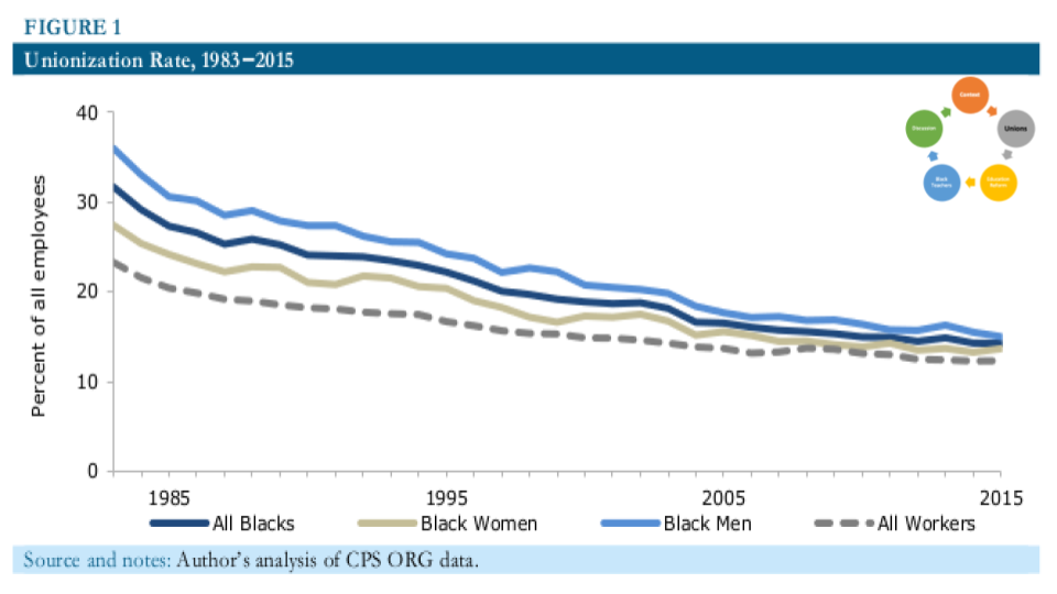 Look here, the attacks on unions, both private and public have everything to do with white elites trying to maintain their position atop the financial and social hierarchy. Here are the racist roots of anti-unionism and the effort to prevent economic solidarity. We still have 27 Right to Work States with this, as its starting point